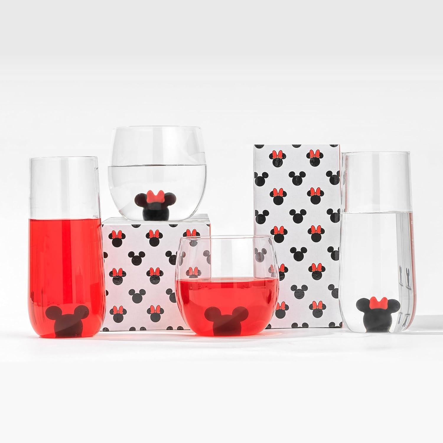 DRINK WITH YOUR BELOVED DISNEY ICONS: Mickey and Minnie are already huge icons, so now we’ve miniaturized them in this fun set of stemless wine glasses. Perched in the center of each Disney cup, crafted from colored glass is a tiny Mickey and a tiny Minnie for a delightfully delicate 3D effect