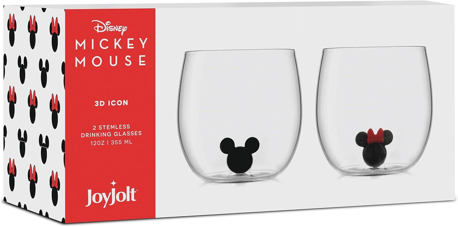 JoyJolt Disney Mickey Mouse Icon Stemless Wine Glass Set of 2 Drinking Glasses. 12 oz Tumbler Glass Cups. Colored Glassware. Disney Gifts, Disney Cups, Disney Collectibles for Adults(DOF Glasses)
