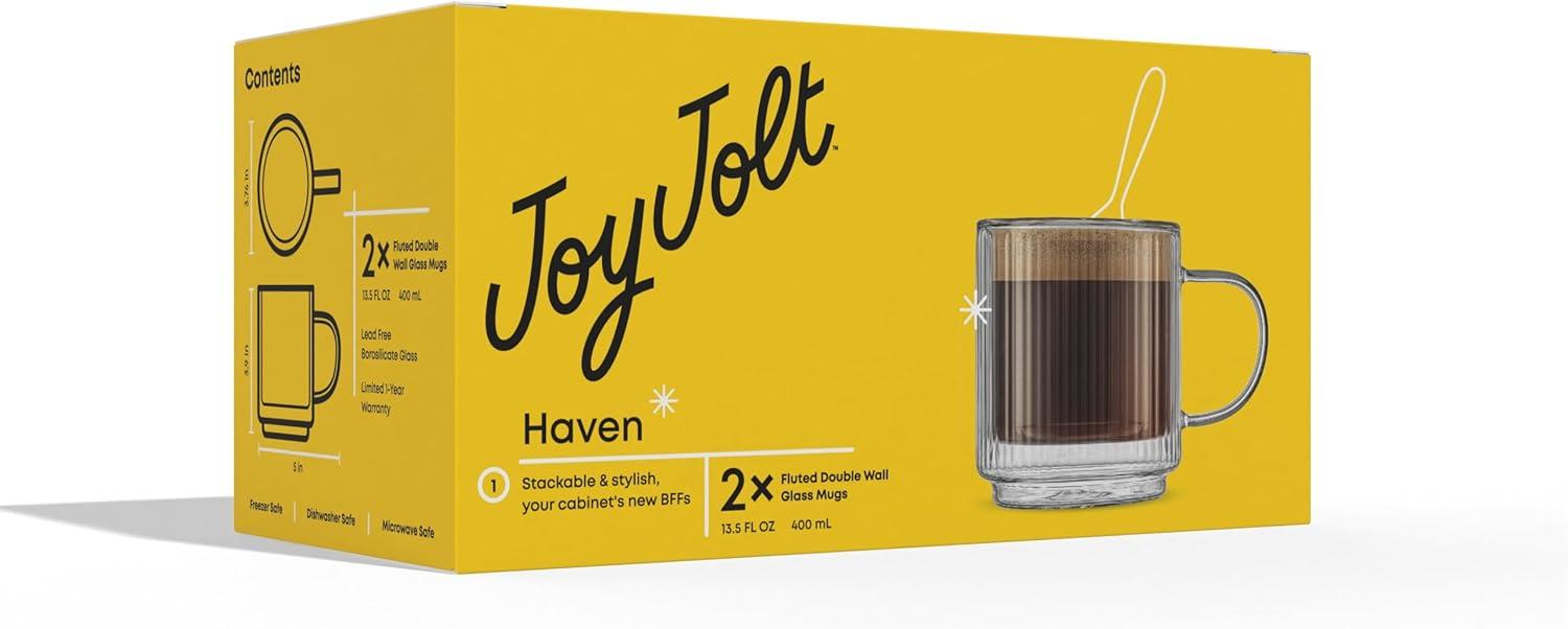 GIFT JOY: Securely packaged for life’s special moments, Haven ripple glass coffee mugs arrive securely packaged in a gift-ready box. Backed by a limited 1-year warranty, so you can delight the espresso lover in your life! Shop this set of 4 JoyJolt double walled glasses, today!