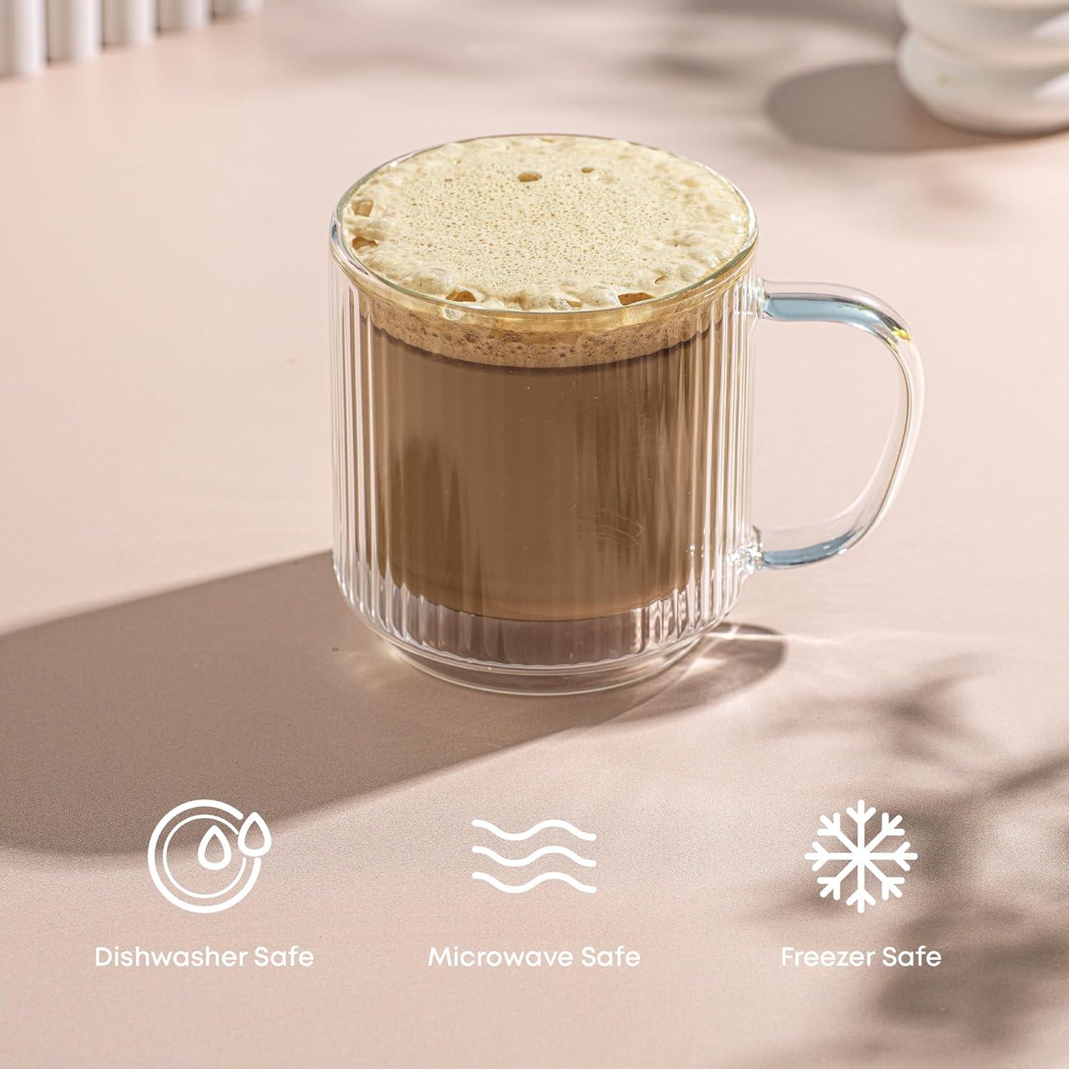 DISHWASHER SAFE: Crafted from durable, heat-resistant borosilicate glass, these tea and coffee glasses are dishwasher, microwave, and freezer safe. From quick cleanups to quicker reheats, they’re built for busy mornings and indulgent afternoons.