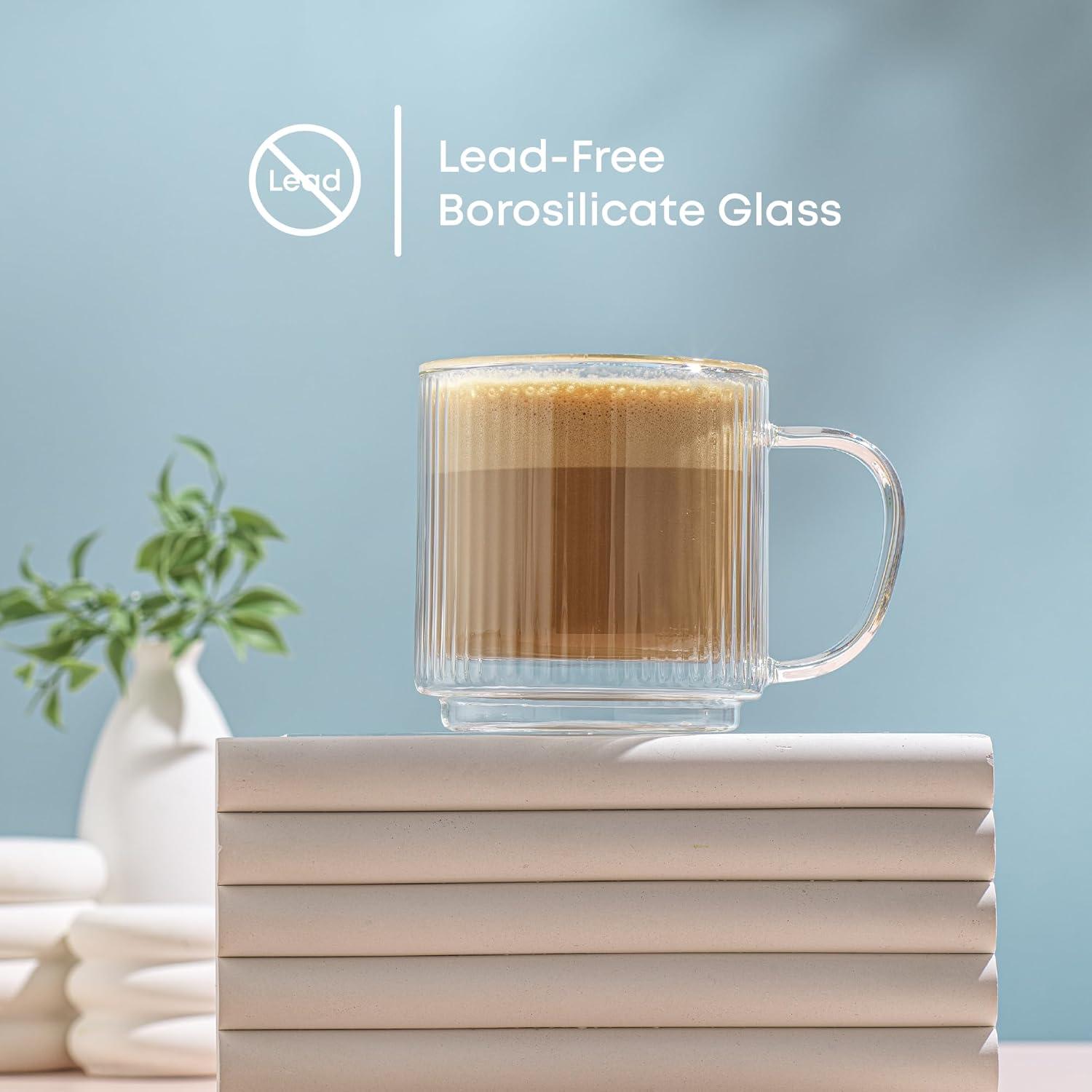 imageJoyJolt Haven Fluted Stackable Espresso Cups Set of 4 25oz Ribbed Double Wall Glasses Stacking Insulated Coffee Cup Set Small Glass Coffee Cups for Espresso Machine AccessoriesFluted