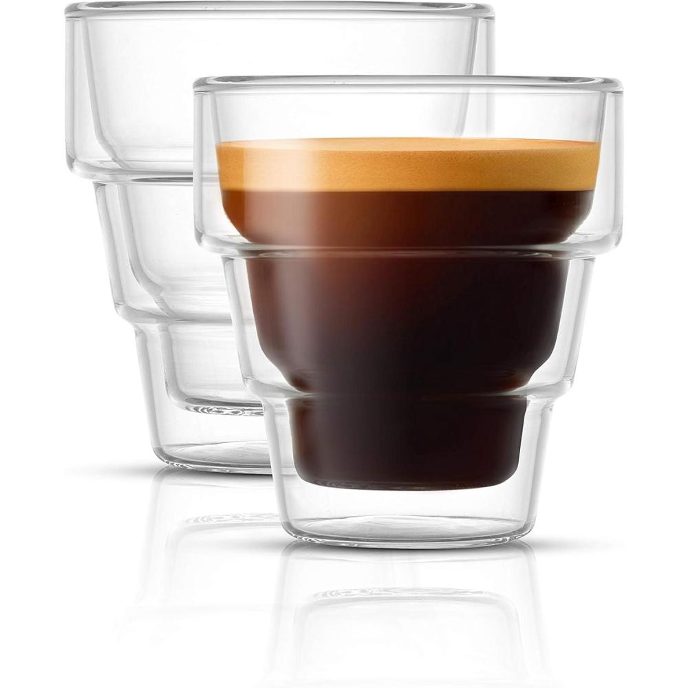 A BEAUTIFUL WAY TO ENJOY ESPRESSO GLASS. Make your next coffee break something special. As you pick up your new double walled espresso mugs, indulge in the elegant way the coffee appears to float inside. Notice how it feels cool to the touch? Your espresso will stay piping hot for longer, so you can sit back and relax, taking your time to enjoy the rich taste and aroma.