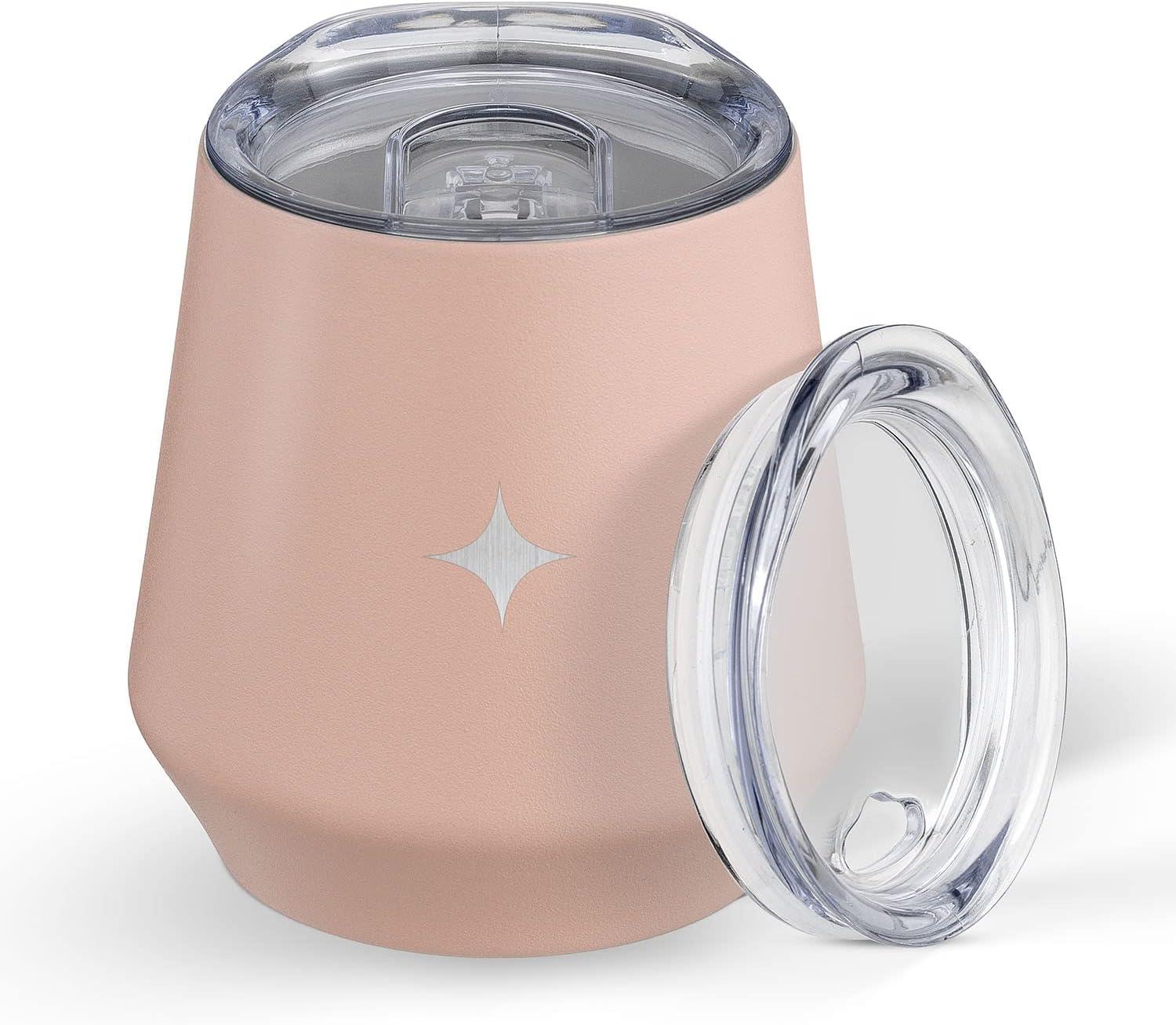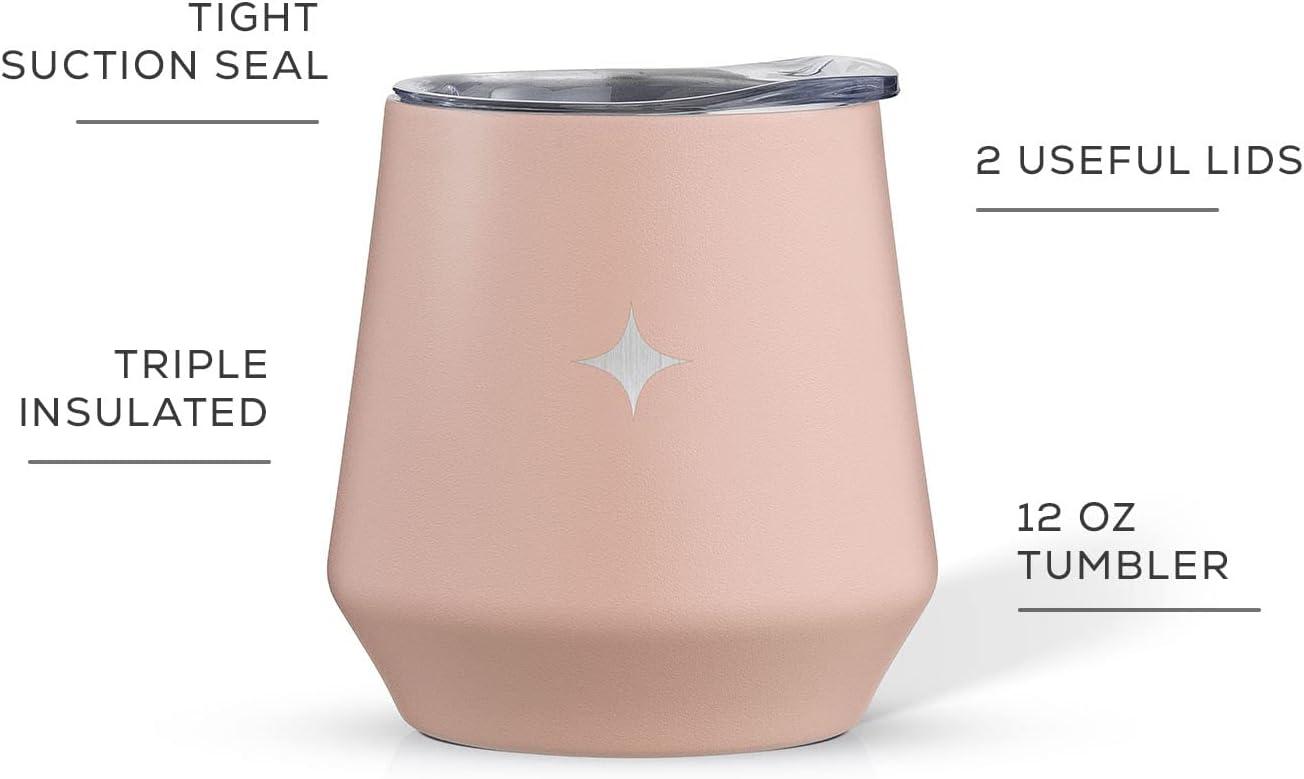 JoyJolt Tri-Insulated Wine Tumbler with Lid Pack. 12 oz Tumbler, Slider and Straw Lids. Vacuum Double Walled Stainless Steel Stemless Wine Glass, Copper Lined for Very Cold Drinks, Travel and Camping(Blush Pink)