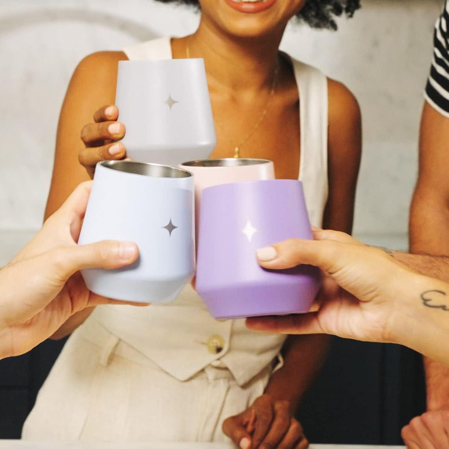THE CUP OF THE YEAR! This powder coated tumbler comes in many colors including : blue, white, green, pink, black – and the on-trend Veri Peri Purple – Pantone Color of The Year! Your metal wine tumbler will be safely nestled in a gift box with a 12 Month Guarantee. So, grab yours now, from JoyJolt.